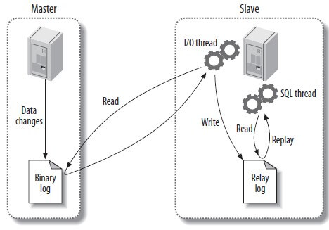 - MySQL slave 将 master 的 binary log events 拷贝到它的中继日志(relay log)