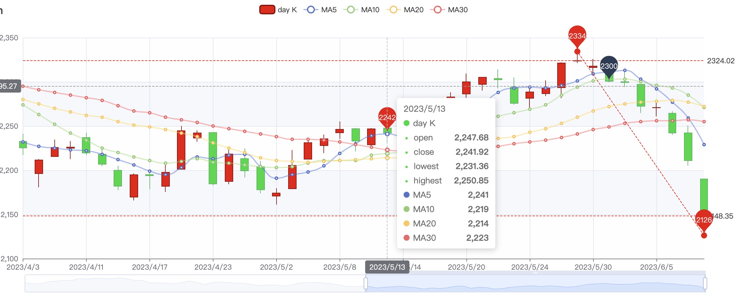 ['2023/1/30', 2360.75, 2382.48, 2347.89, 2383.76],
