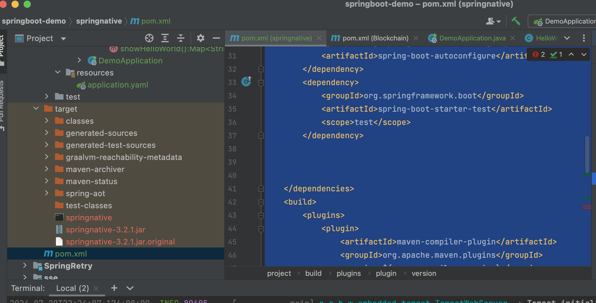 2024-07-29T22:24:07.136+08:00 INFO 80605 --- [ main] com.et.springnative.DemoApplication : Starting AOT-processed DemoApplication using Java 17.0.8 with PID 80605 (/Users/liuhaihua/IdeaProjects/springboot-demo/springnative/target/springnative started by liuhaihua in /Users/liuhaihua/IdeaProjects/springboot-demo/springnative/target)