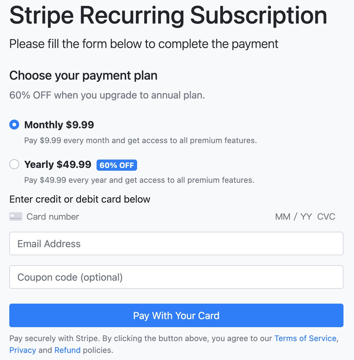 Stripe Recurring Subscription