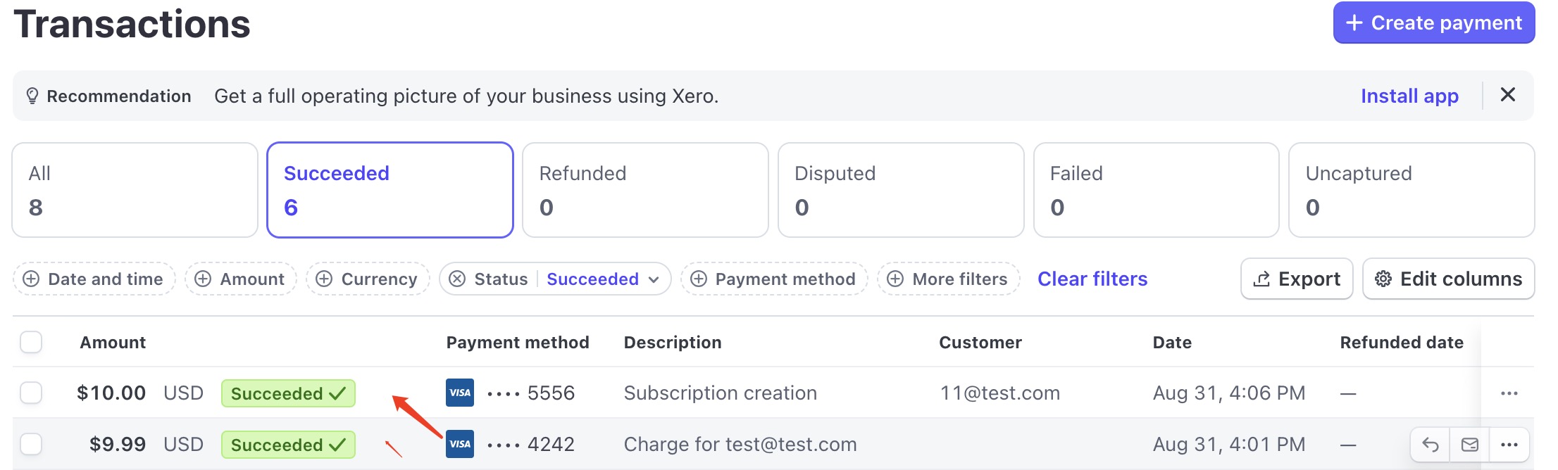 可以在这个地址 https://docs.stripe.com/testing,找到测试卡号, 输入测试卡号,显示支付成功