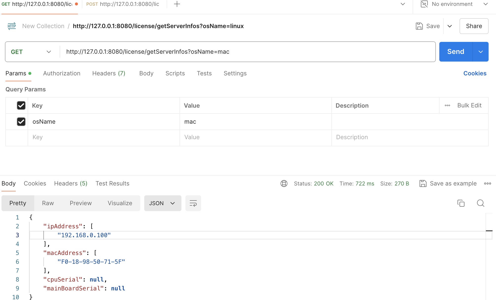 public LicenseCheckModel getServerInfos(@RequestParam String osName) {