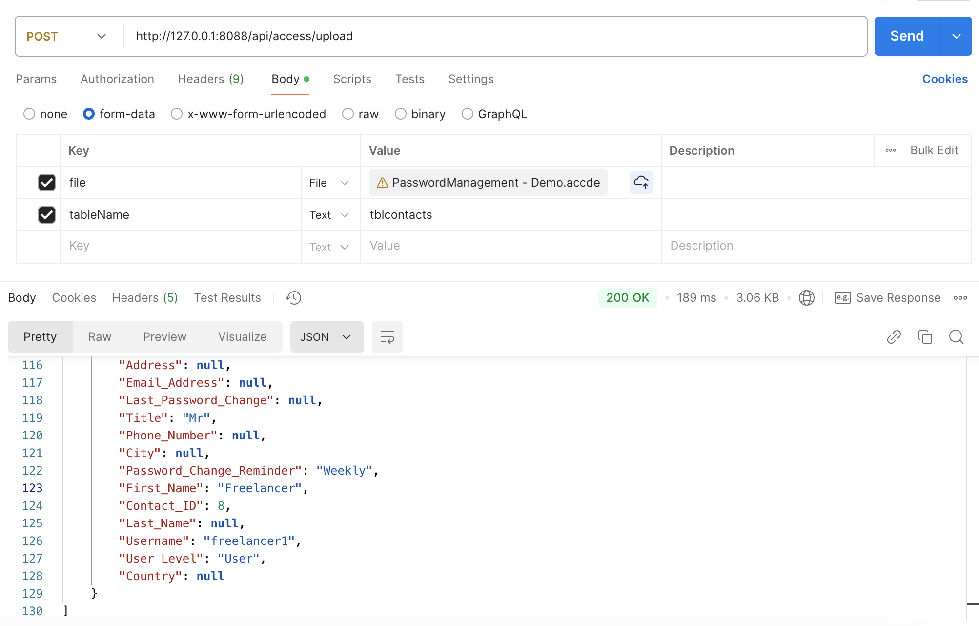 - postman访问http://127.0.0.1:8088/api/access/upload