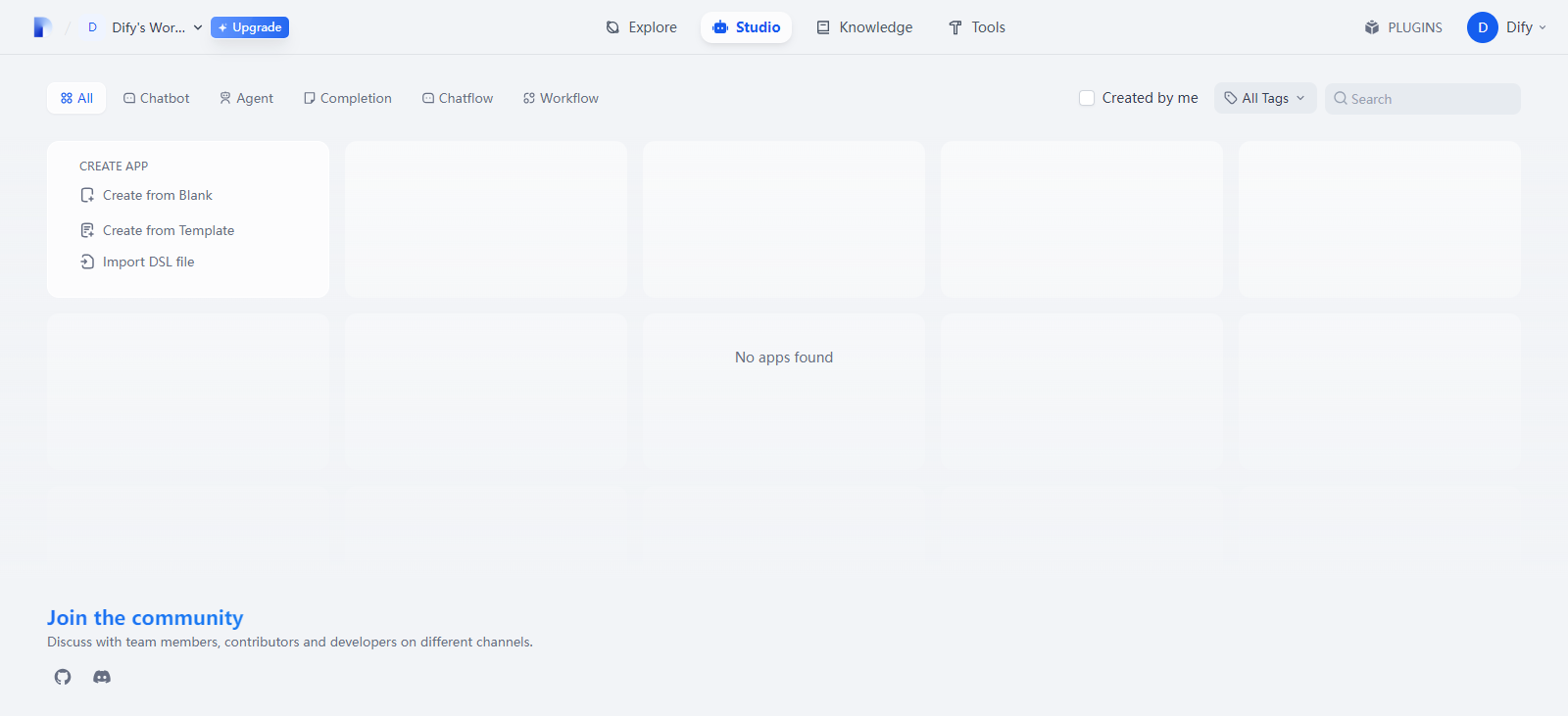 服务启动后,可以通过浏览器访问 Dify。默认情况下,Dify 会在 http://localhost上运行。