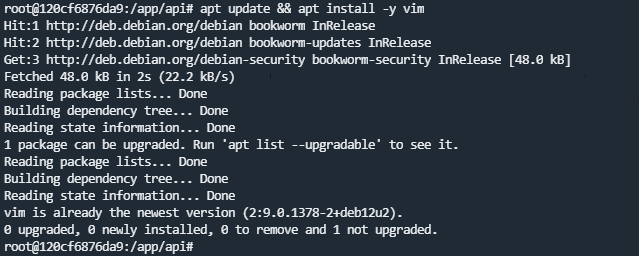 sudo docker exec -it docker-api-1 /bin/bash 进入容器命令行