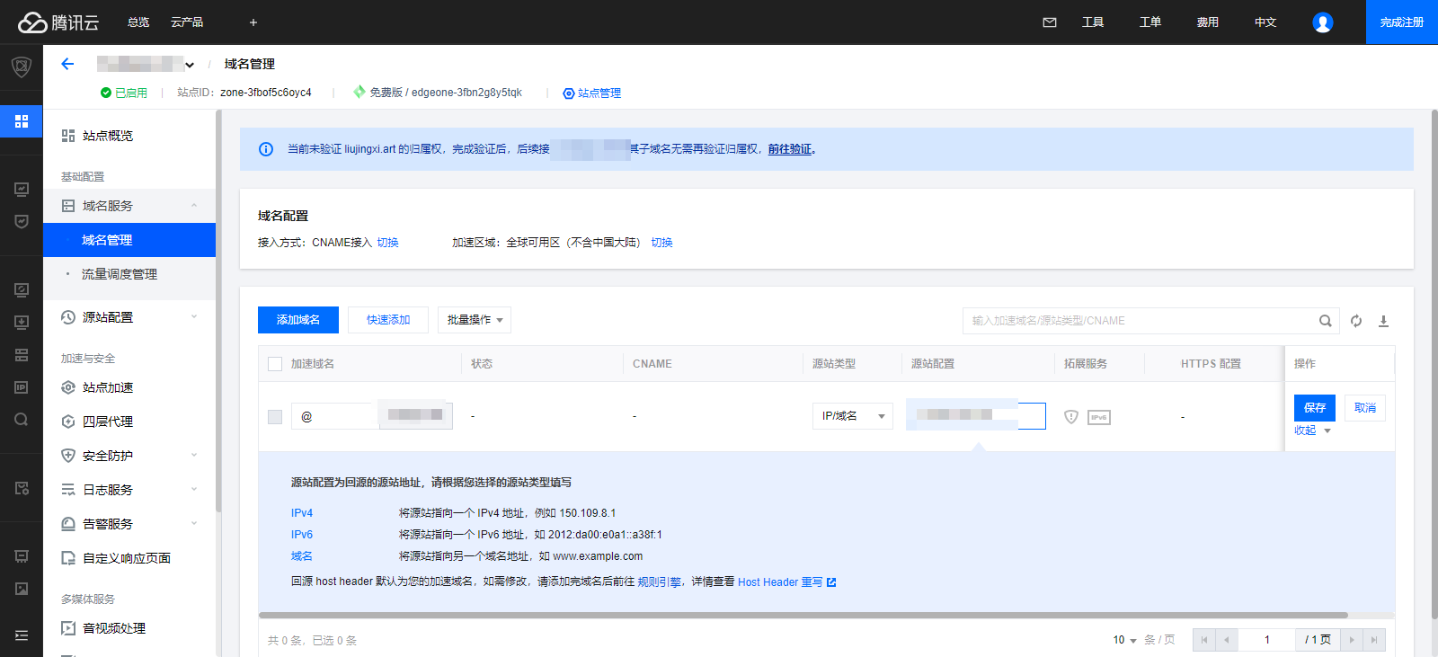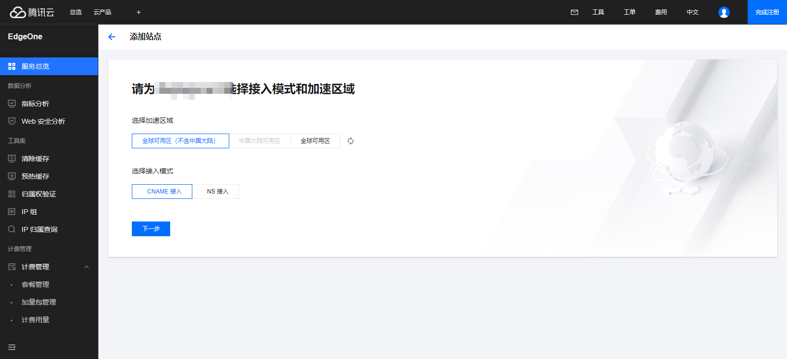 - 输入要加速的域名(若是中国大陆用户,需要域名已备案)