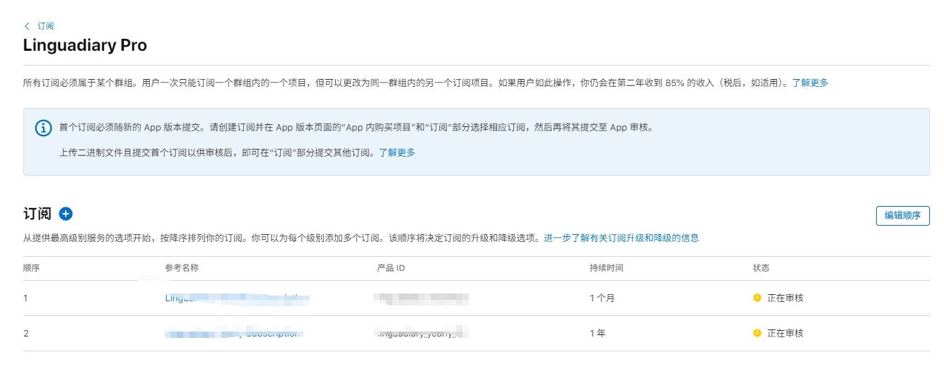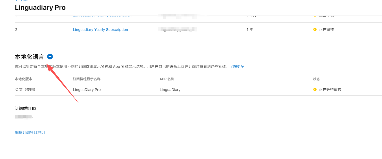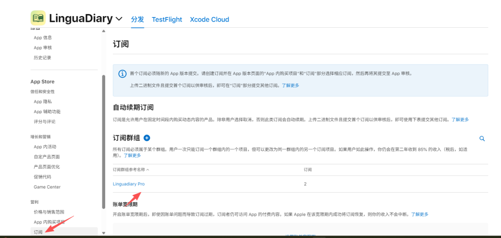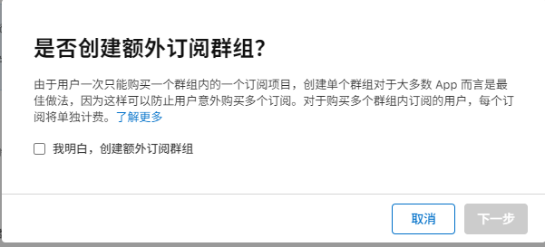 重要:必须先创建订阅组(Subscription Group)才能创建订阅产品。