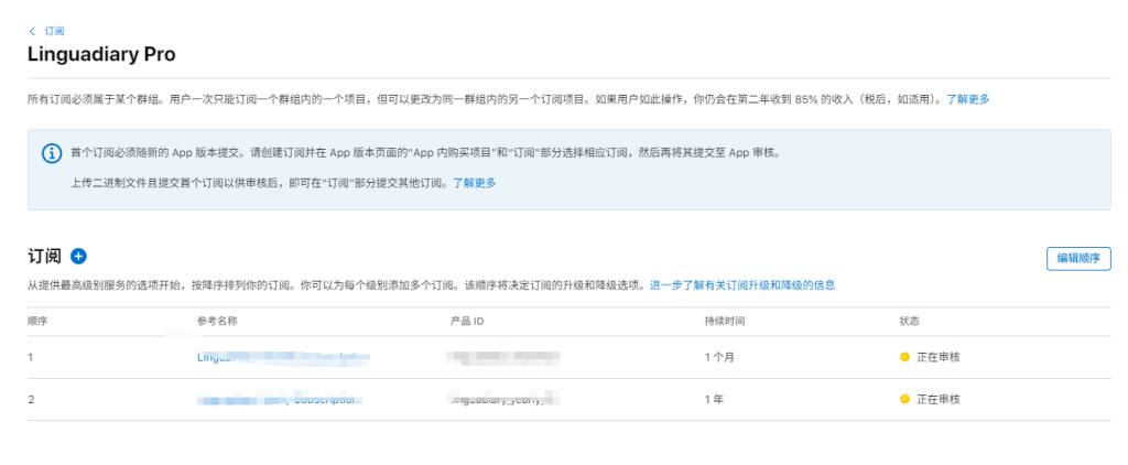 注意:一个订阅组内,用户只能选择一个订阅(例如月付 or 年付)