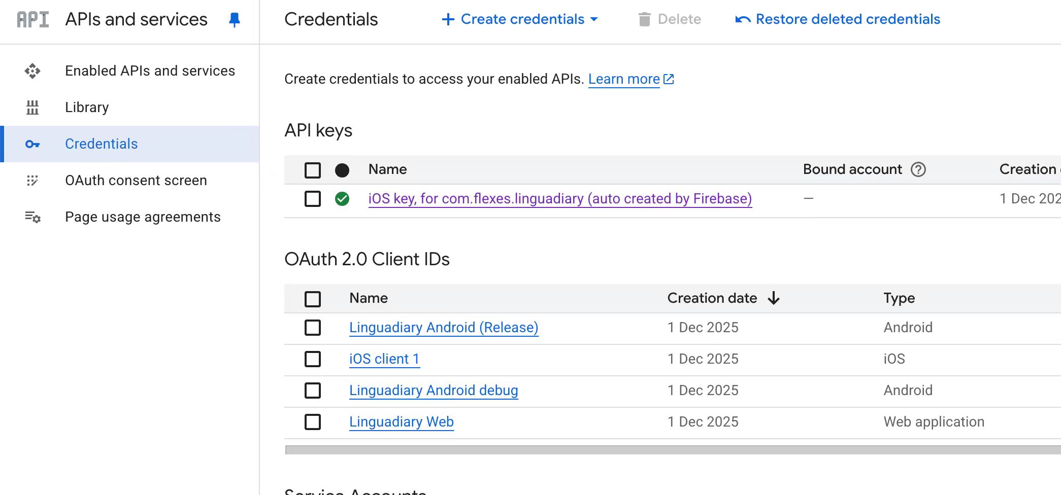 去:Google Cloud Console → APIs & Services → Credentials