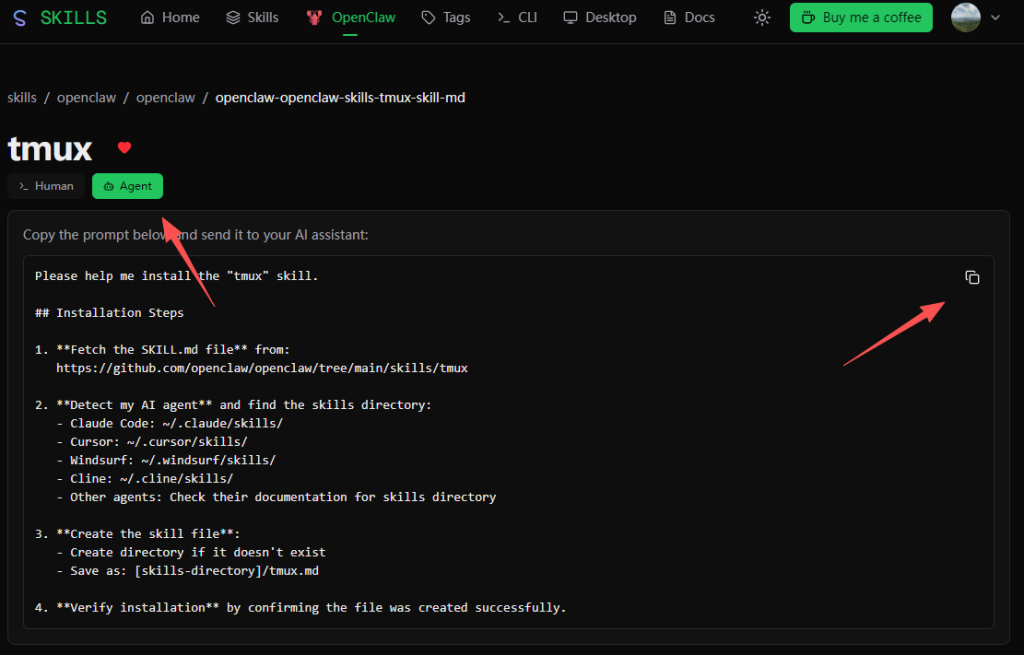 去这个网站https://skills.lc/找到技能安装的提示词
