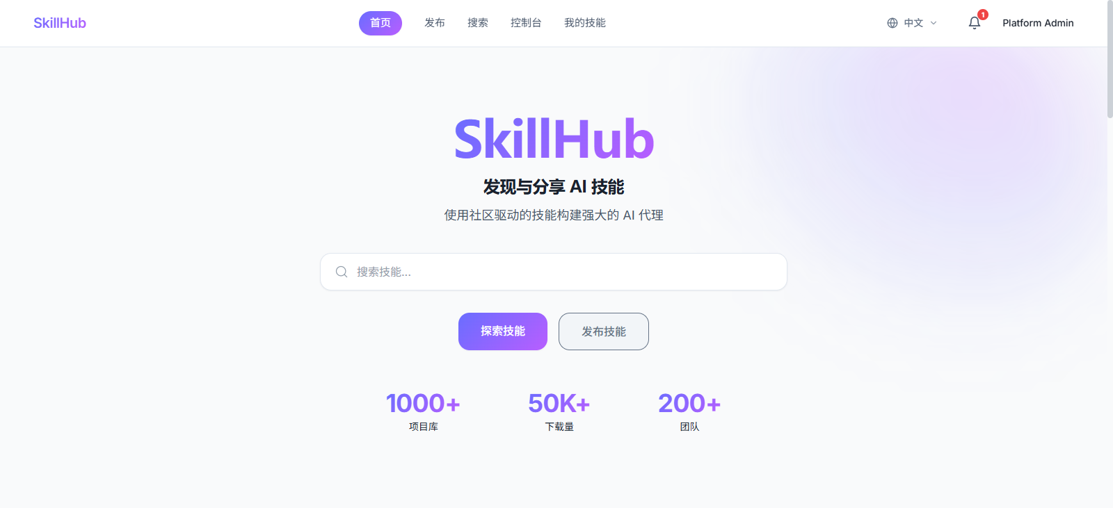 SkillHub 是一个自托管平台,为团队提供私有的、受治理的智能体技能共享空间。发布技能包,推送到命名空间,让其他人通过搜索发现或通过 CLI 安装。专为防火墙后的本地部署而构建,提供与公共注册中心相同的精致体验。