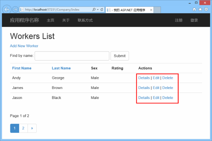 不同点是第7行,根据获得的worker实例,在数据列表中找到对应记录,更新其值,并设置其状态为Modified。最后将改动保存到数据库并跳转回数据查询页面。